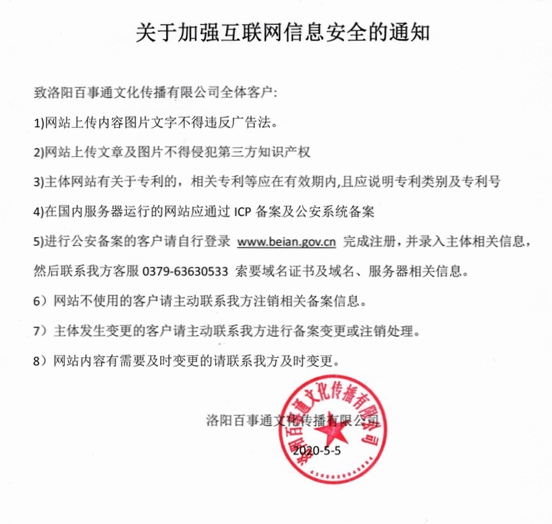 6)網(wǎng)站不使用的客戶請主動聯(lián)系我方注銷相關(guān)備案信息。